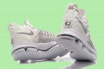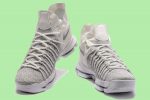 This Elite edition of the Nike KD 9 comes dressed in a clean Ivory, Pale Grey, Sail and Gum color combination. As you can see, the uppers feature a mixture Sail, Pale Grey and Ivory while constructed with Flyknit. Using a single layered mesh, Vivid Sky is seen within the visible Zoom Air. Completing the look is Gum across the outsole.