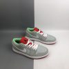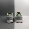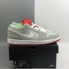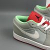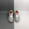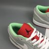 The shoe is dressed in a Grey Mist, University Red, and Poison Green color scheme. Featuring a full Grey nubuck upper that includes White detailing on the Nike Swoosh logos, laces and midsole. Red is displayed on the tongue and outsole, while a Mint Green covers the insole the Jordan Brand 30th Anniversary stamp.