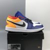 This offering of the low-top Air Jordan 1 features White leather on the toe and sides paired with Royal Blue overlays and nylon tongues while bold Yellow takes care of the rear. Black Swooshes on the sides with matching laces, Orange Jumpman branding and lining atop a White midsole and Black rubber outsole completes the design.