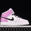 Dressed in a Barely Grape, Black, White, and Rush Fuchsia color scheme. This offering of the mid-top Air Jordan 1 comes constructed in a full leather build with mesh tongues and lining. It features Pink and Lavender tones throughout its upper paired with Black laces, Swooshes, and branding. A clean White midsole atop a Lavender rubber outsole completes the design.