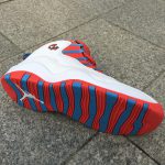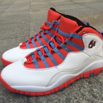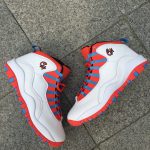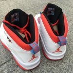 Dressed in White, University Blue, Black and Bright Crimson, which is different from anything we have associated on the Air Jordan 10. In-fact even a Chicago inspired release. However, the inspiration does connect with the Chi by taking the colors from the city’s flag. Using a combination of smooth and tumbled White leather through the base, the shoes feature hits of Bright Crimson and University Blue on the outsole, around the eyelets and collar.