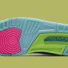 Dressed in a Black, Electric Green and Infrared 23 color scheme. It feature a Black premium tumbled leather upper with Black suede overlays. Pink, Blue and and Lime Green accents are used on the eyelets and midsole atop a Blue translucent outsole.