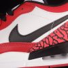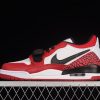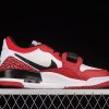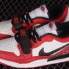 The sneaker features a low-cut take on the Legacy 312, using a white leather base and nylon tongue with red leather overlays throughout, mimicking the Air Jordan 1 “Chicago” template. Black accents are placed throughout, most notable on the Swoosh and forefoot strap with the Jumpman appearing in black on the white heeltab and Wings logo seen on the tongue tag in red. Red elephant print is seen on the heel overlay, with the white and black midsole using a visible Air unit in the heel and a red outsole finishing off the sneaker.