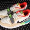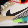 An array of bright colors along with gradient midsoles serve as the highlight of this colorway of the Jordan Legacy 312 Low. This offering of the low-top Jordan Legacy 312 comes constructed in a mix of leather and materials. It features a White base with Tan overlay, Black Swooshes,. Additional details include grey midfoot straps with neon green Nike branding, orange inner liners, black and grey elephant print on the heels, and green to teal gradient midsoles.