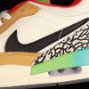 The timing is indeed random, but with the Air Trainer 1 enjoying its own resurgence, the Legacy 312 Low has some space to fit in as it utilizes the same fore-foot strap seen in that 35-year-old classic. This latest colorway pairs opposite sides of the spectrum, leaning on a lifestyle-friendly tan leather overlay and attaching it to a multi-colored array highlighted by a bold gradient pattern at the midsole, neon green on the logo accents, and a vivid orange interior.