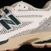 The base of this New Balance 1906R is made with thick white mesh and is secured with dynamic leather overlays. The signature New Balance “N” comes in green and features an exposed shoelace detail. The ABZORB midsole has an aged tint with a gum outsole. The tonal neutrals of this colorway make this a perfect sneaker for Fall/Winter and will transition well into Spring.