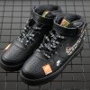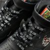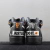 Premium textured leather blankets the upper in its entirety with a multitude of black and orange accents used to add artistic depth and contrast. Such details include the black hang tag, orange patch tabs, colorful tongue layout and branded overlays at the heel, with Nike’s iconic slogan hitting most of these design elements.