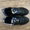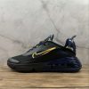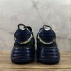 This offering of the Nike Air Max 2090 features a transparent upper with Navy leather mudguards, Yellow outlined Swooshes on the sides highlighted with Yellow camouflage print on the tongues and heels. Blue plastic pieces on the tongues, heels, and rear sole completes the design.