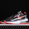 This edition of the Nike Air Max 270 features a Black upper paired with Grey detailing and Red contrasting accents throughout. A White React midsole atop a Red outsole completes the design.