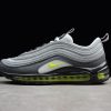 Dressed in a Dark Grey, Volt, Stealth and Pure Platinum color scheme. This Nike Air Max 97 uses the theme perfectly with all the Neon accents in the right areas. The last time the “Neon