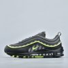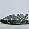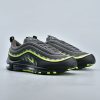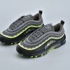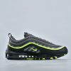 Dressed in a Thunder Grey, Lime Blast, and Black color scheme. This Nike Air Max 97 is highlighted with diagonal striping and Lime Green accents on its stripes racing around the shoe. The same pattern is used on the insole and midfoot panel.