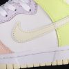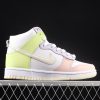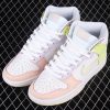 The upper uses a white leather base with overlays in different pastels. The mudguard is dressed in baby pink; eyelet overlays are in lavender, heel and ankle overlays are in Lemon Twist. The Swoosh takes on a cream tone, and the white tongue tag uses the same pink from the mudguard for the Nike insignia. A white midsole and the cream from the Swoosh are utilized on the outsole to finish off the bottom half of the Dunk High.