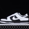 This offering of the Nike Dunk Low features a Black tumbled leather base with White overlays, Swooshes, laces, lining, and rubber outsole. Black tongue labels, heel branding, insoles, and midsole completes the design.