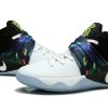 The shoe features a White-based upper that is completed with a Tie Dye-like heel that is full of various colors that all transitions into one another.