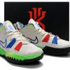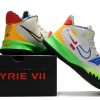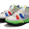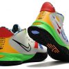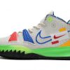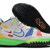 the pair starts with a rather straightforward upper. The mesh, which appears almost lace-like, opts for a flat white look, one that complements the tongue and strings adjacent. Then, hits of bright neon green come into play, stealing the spotlight as they dress the entire midsole. Elsewhere, this color serves a more supporting role, placed off to the side of a patterned lining and numerous primary-colored fixtures. And its here — along the yellow, specifically — where Irving’s love for sport, music, film, and art are listed.