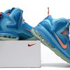 Understanding the blue is the hottest part of a flame, the “China” LeBron 9 is decked out in bright Neptune Blue, with Total Orange accenting the Swoosh logos, pull-tab and newly designed LeBron logo on the heel. A fire-breathing dragon graphic is sublimated on the tongue, while a flame appears on the pull-tab to further carry out the theme. Adding the finishing touches below is a blue 180-Max Air bag and translucent rubber outsole.