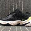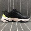 This Nike M2K Tekno features a full Black-based upper constructed in a mix of leather and mesh. Volt contrasting accents is spotted on the Swoosh logos, back pull tabs and heel, while sitting atop a Phantom midsole and Black rubber outsole.