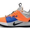 This Nike PG 3 comes dressed in a Total Orange, Black and Metallic Silver color combination. Looking closer they feature Orange mesh on the upper along with mismatched Red and Blue overlays on the forefoot. Along with Silver details, we also have embroidery on the tongue and heel that furthers the space look. In addition we have NASA branding on the left heel and insoles, Apollo 16 patch lands on the right heel, American flag on the right tongue and removable flight patch. Completing the look we have “Don’t tell me the sky is the limit when there are footprints on the moon,” written across the midsole.