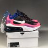 Dressed in a Black, White, Hyper Pink, and Vivid Purple color scheme. This Nike Air Max 270 React features a Black upper highlighted with Pink, Purple and Blue contrasting accents. A White Swoosh atop a matching React cushioned midsole completes the design.