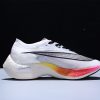 Dressed in a White, Guava Ice, and Black color scheme. The runner features a redesigned upper with a large Swoosh appearing on the toe box. Its upper is done in a new lightweight water-repellant fabric called VaporWeave atop a ZoomX foam sole.